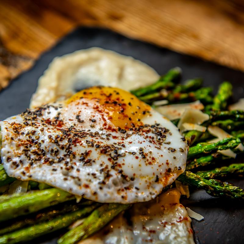 Roasted garlic aioli, parmesan, egg, black pepper