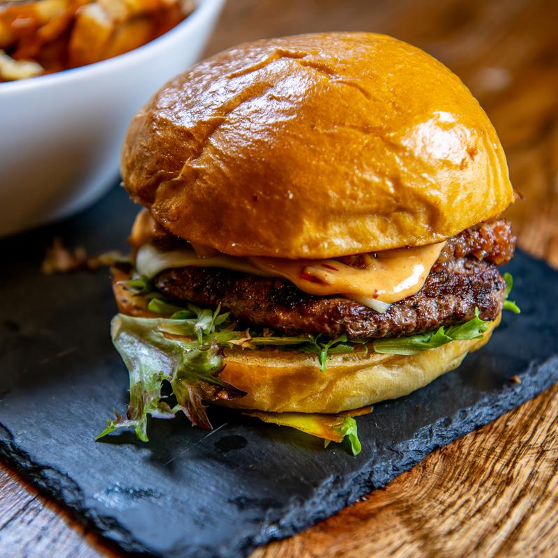 Comes with choice of: Fries, Coleslaw or a Hamm’s | $2.00 upgrade: Tots | $4.00 upgrade: Mac ‘N Cheese, Soup Hot Truffle Fries, Poutine Fries, Pork Belly Brussels | Substitute Gluten-free bun +$1.00